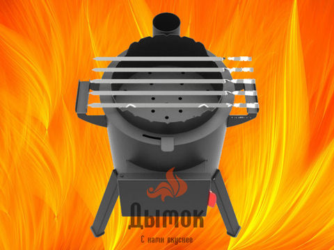 - жаровня имеет перфорированное днище и заслонку, перекрывающее перфорацию - таким образом, жар от углей под контролем;